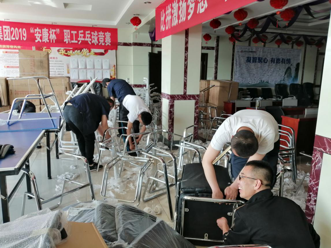 2019年5月19日下午,礦長(zhǎng)梁映章帶領(lǐng)技術(shù)、地測(cè)、通風(fēng)科人員,在五層會(huì)議室組裝會(huì)議座椅,大家有說(shuō)有笑、干的熱火朝天,標(biāo)準(zhǔn)的------快樂(lè)工作現(xiàn)場(chǎng)。