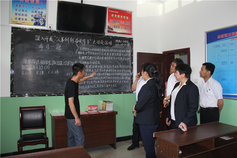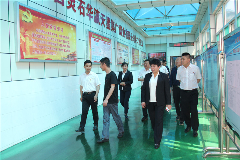 在華瀛天星集廣煤業(yè)辦公室主任兼工會主席、黨建辦主任張振國的陪同下,聚義集團黨委成員一行先后參觀了天星集廣煤業(yè)黨支部黨員活動室、機電科、機修車間、“五小”成果展示區(qū)、井口黨支部、井口群眾安全工作站、安全文化走廊、頭燈房、集廣煤業(yè)創(chuàng)新工作室、洗衣房等地,聚義集團黨委成員一行對華瀛天星集廣煤業(yè)的黨建工作、先進技術(shù)設備、經(jīng)營管理理念、環(huán)境衛(wèi)生管理均贊嘆不已。