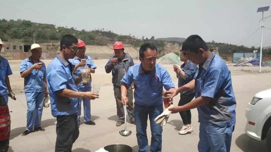 慰問組領(lǐng)導們把包含祝福的2600多個香飄四溢的粽子、精心熬制冷卻好了的愛心綠豆湯送到每位員工手中,把集團公司的祝福傳遞到基層,并囑咐他們炎炎夏日要保重身體,一定要時刻牢記安全生產(chǎn)。大家吃著軟糯的粽子,喝著清涼甘甜的綠豆湯,在炎炎夏日里感受到清涼舒暢。