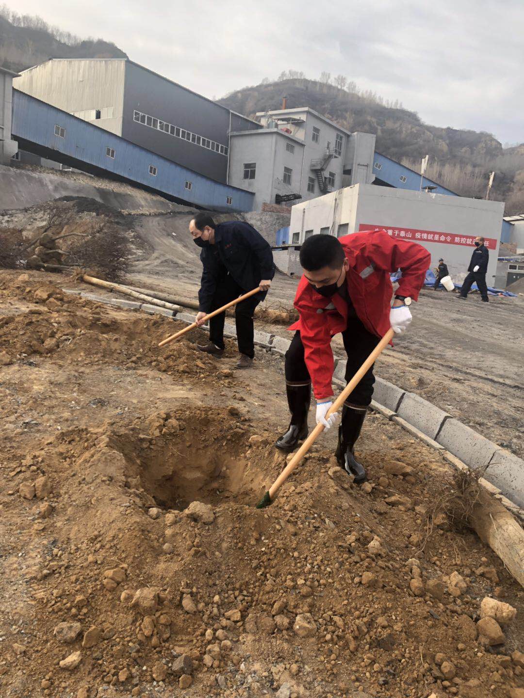 一個(gè)個(gè)忙碌的身影交織成一幅幅生動(dòng)的畫面,經(jīng)過(guò)一番熱火朝天的勞動(dòng),200余棵樹苗毅立在我們礦區(qū)的主干道及行政樓前,迎風(fēng)挺立,把我們礦區(qū)裝點(diǎn)的更加生機(jī)勃勃。